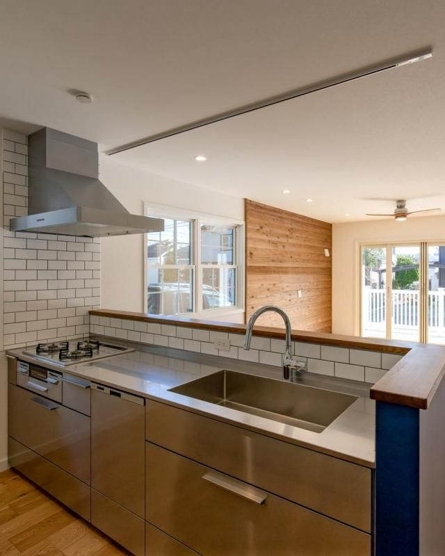 リビングの壁をアクセントでレッドシダーを板張りしたり、