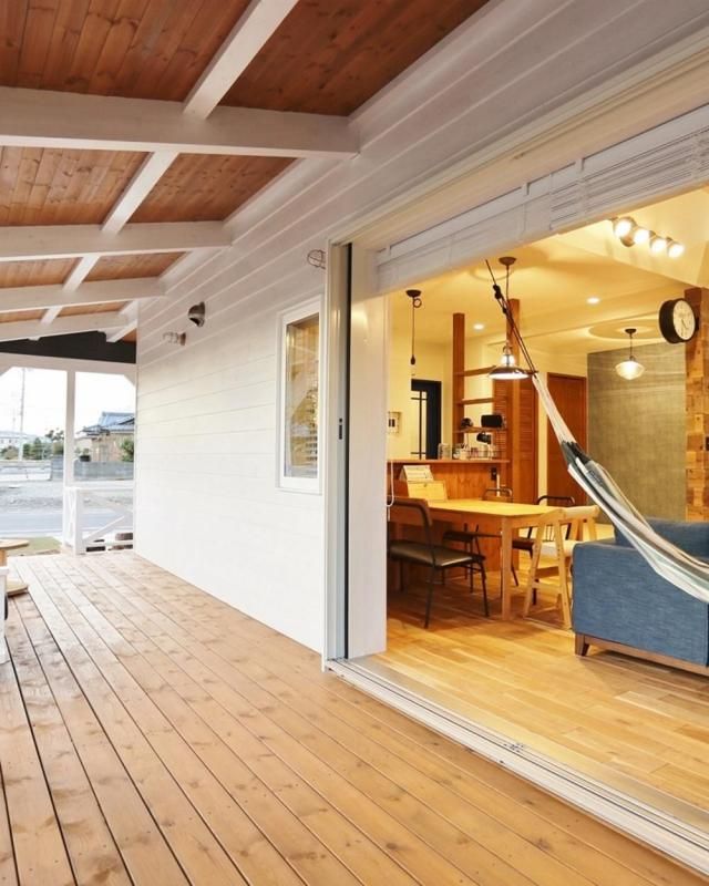 リビングから続く大きなカバードポーチには